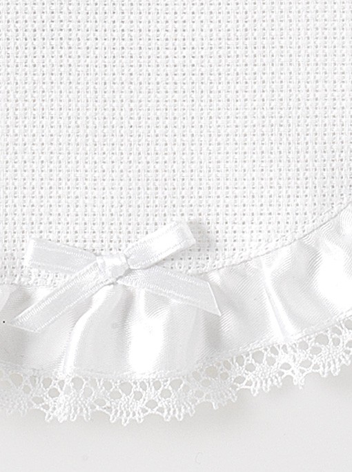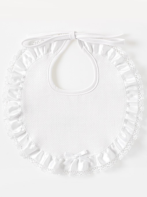 Soft double terry bib with Aida pocket. Details in satin and broderie anglaise