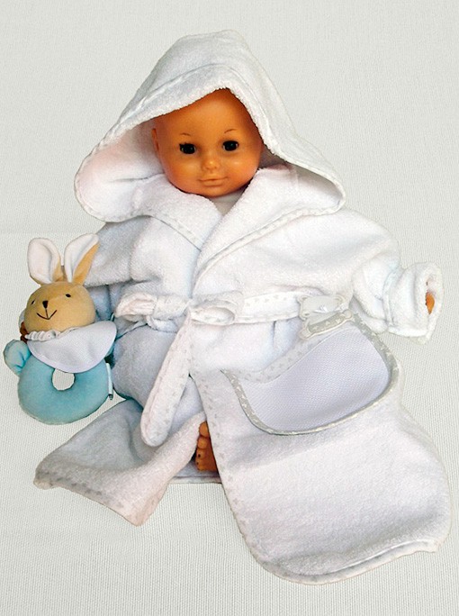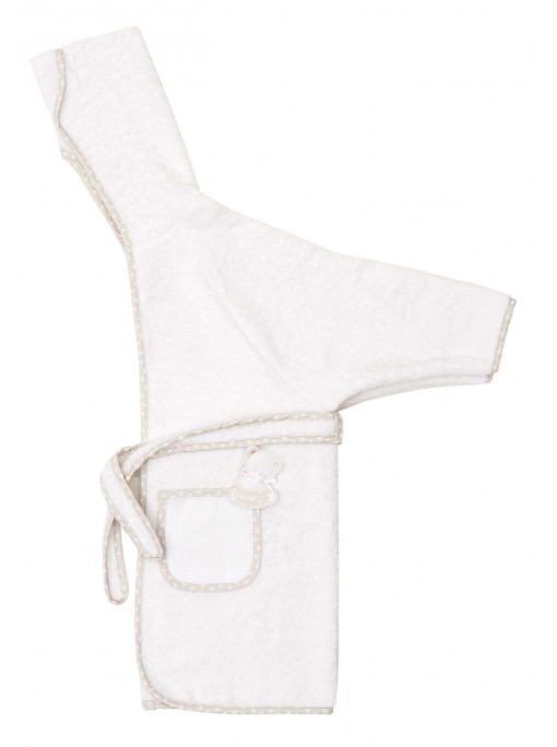 For a baby boy or a baby girl is available this beautiful bathrobe, with sleeves and hood.