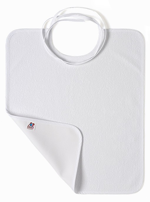 Bavaglino adulto in spugna cerata, lato in spugna e lato idrorepellente.