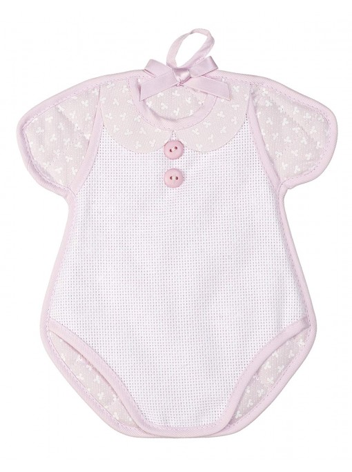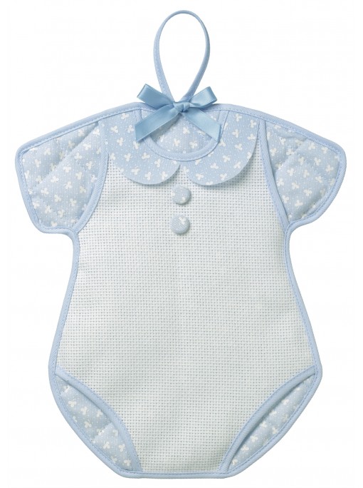 Fiocco nascita in 100% cotone trapuntato con colletto e body in tela aida ricamabile