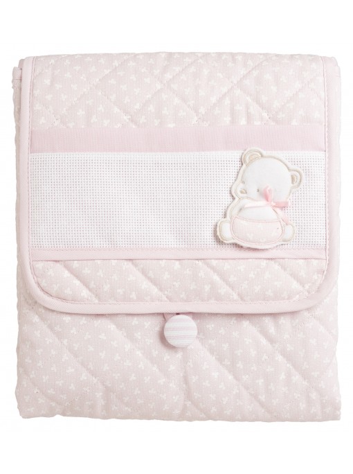 Realizzato in morbida spugna e 100% cotone, con applicazioni in tela aida da ricamare